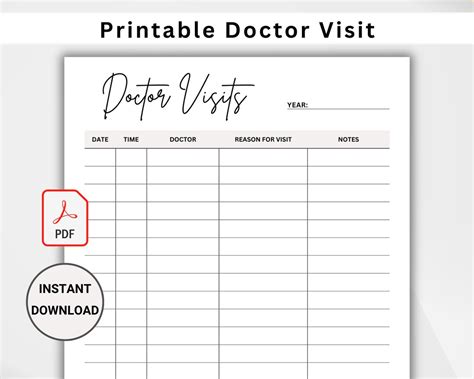 Doctor Visits Tracker Printable