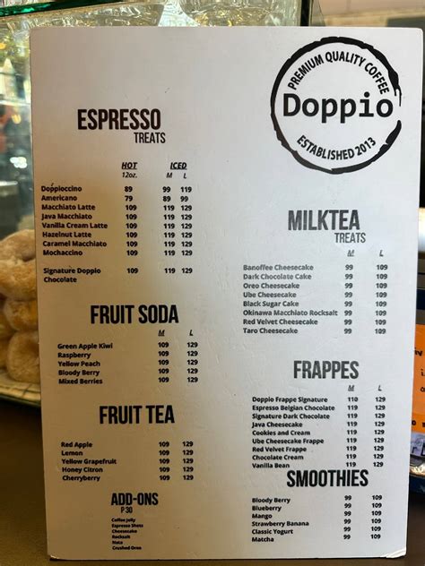 Doppio Cafe Printable Menu – What is a doppio espresso? Read here step by step what exactly the caffe doppio is and how you can. View the menu for doppio senso and restaurants in new york, ny. Cafe, continental, italian, bakery, beverages, coffee.